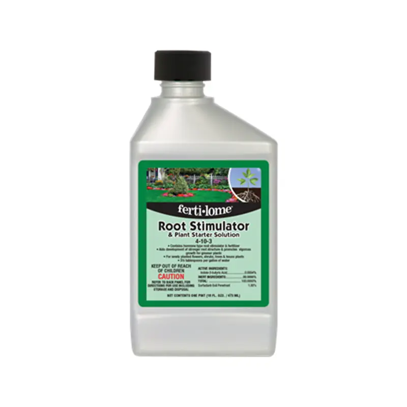 Use Ferti-lome ® Root Stimulator & Plant Starter Solution every time you plant trees, shrubs, roses, annuals, and perennials to stimulate early root formation and stronger root development. The root stimulator reduces transplant shock and promotes greener, more vigorous plants. Your plants will become established more quickly and grow with more gusto. Application Rates:
